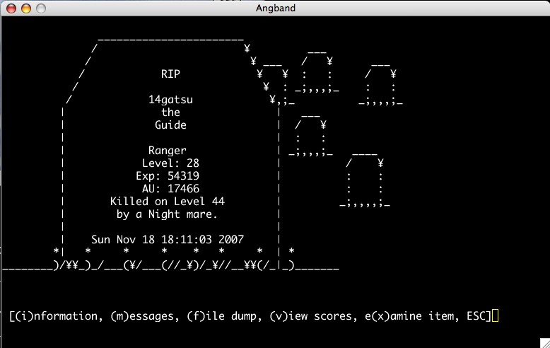 昨日に引き続き,angbandやったんですよ.