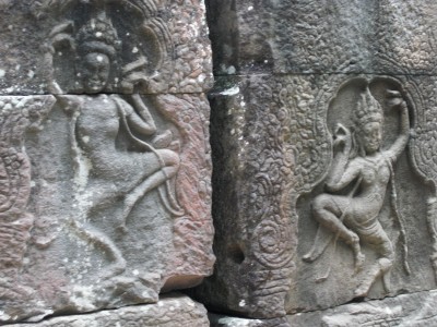 スラ・スランの正面はバンテアイ・クデイ寺院.この日最後の目的地です.柱に踊る天女のレリーフがいっぱい.かくれんぼできそうな楽しそうな場所でした.中はなぜかうまく写真に映ってくれない場所がいくつかあり,印象深い寺院でした.