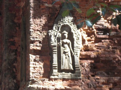 (遺跡を守り続けてきた天女の像を,朝の太陽が照らしていた)