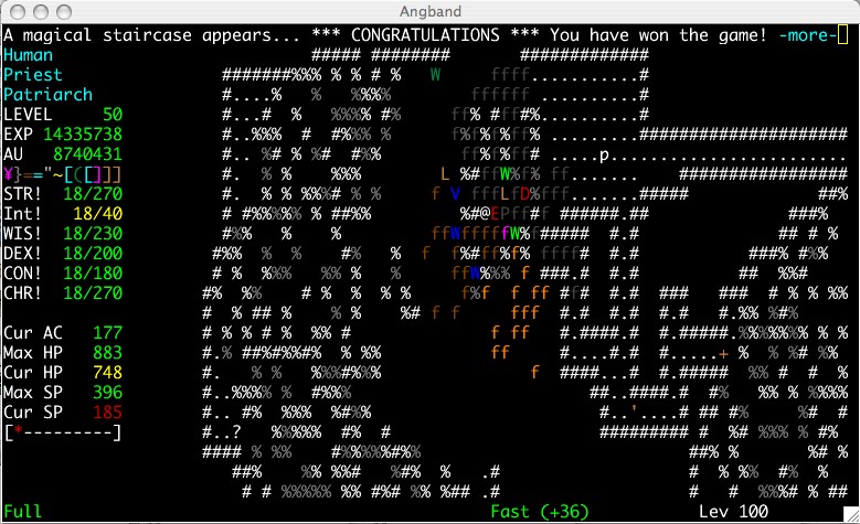 <人間のプリースト>で地下100階,モルゴスを倒しました.